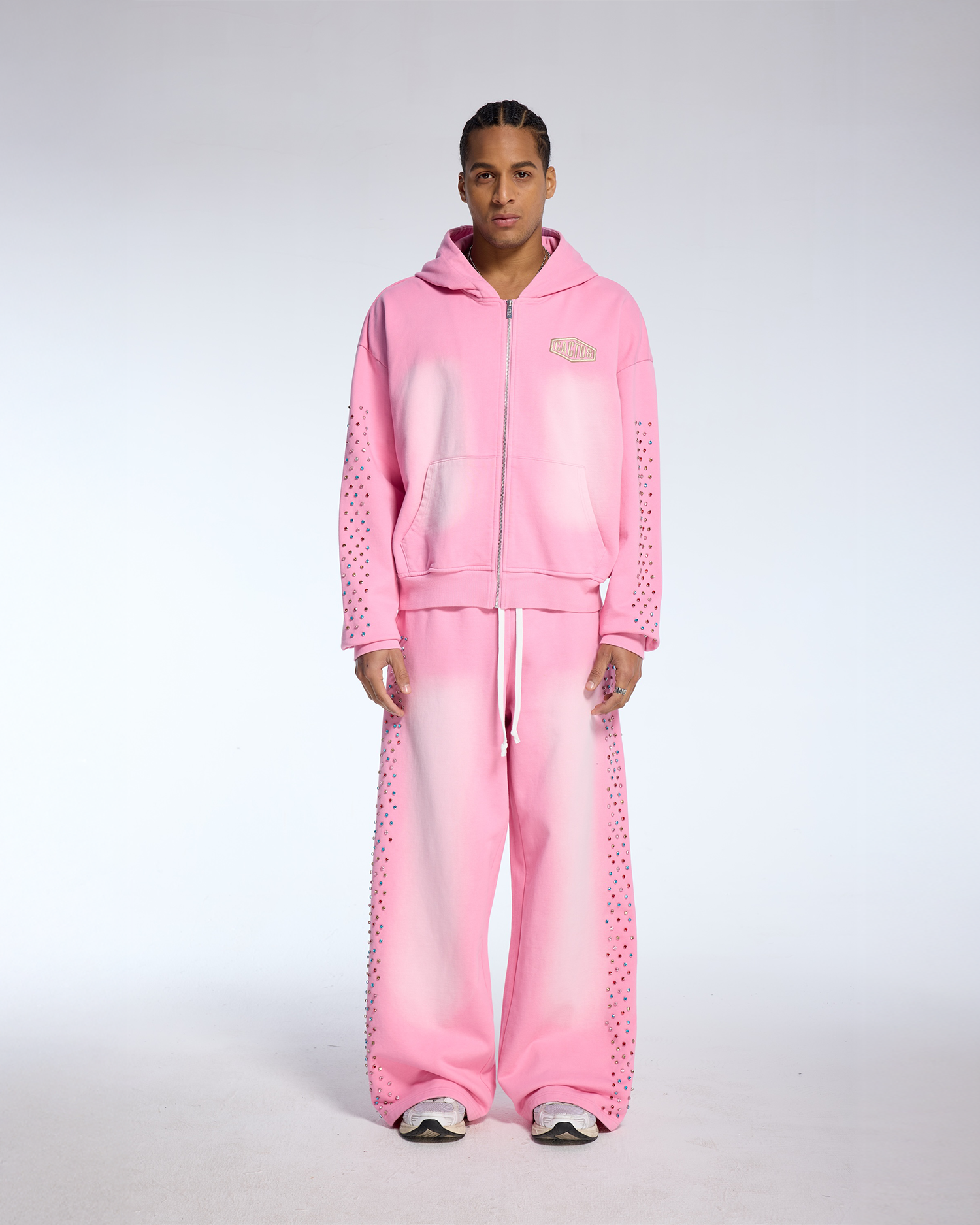 CRYSTAL CACTUS ZIP HOODIE - PINK