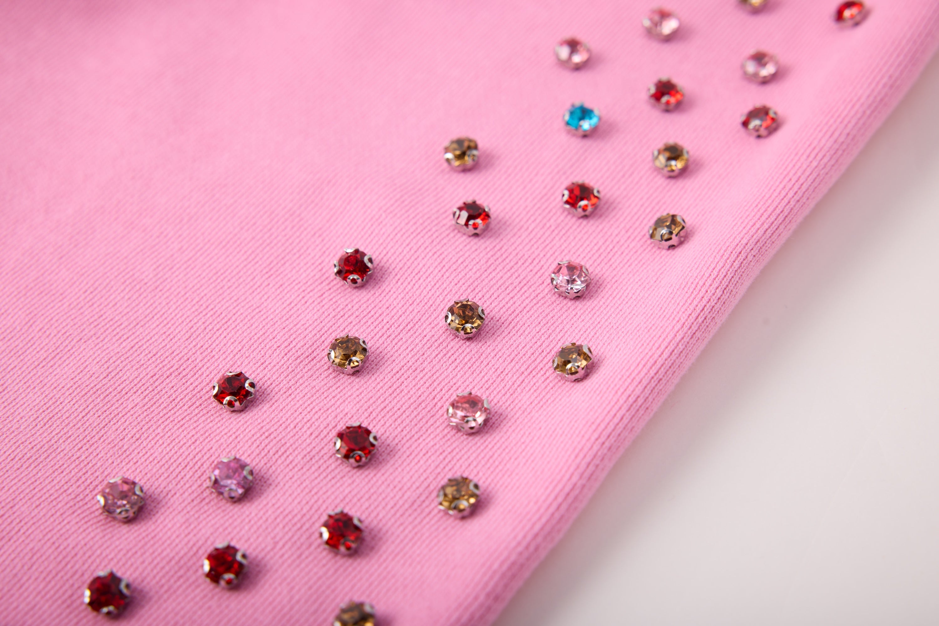 - Rhinestone sleeves sewn in