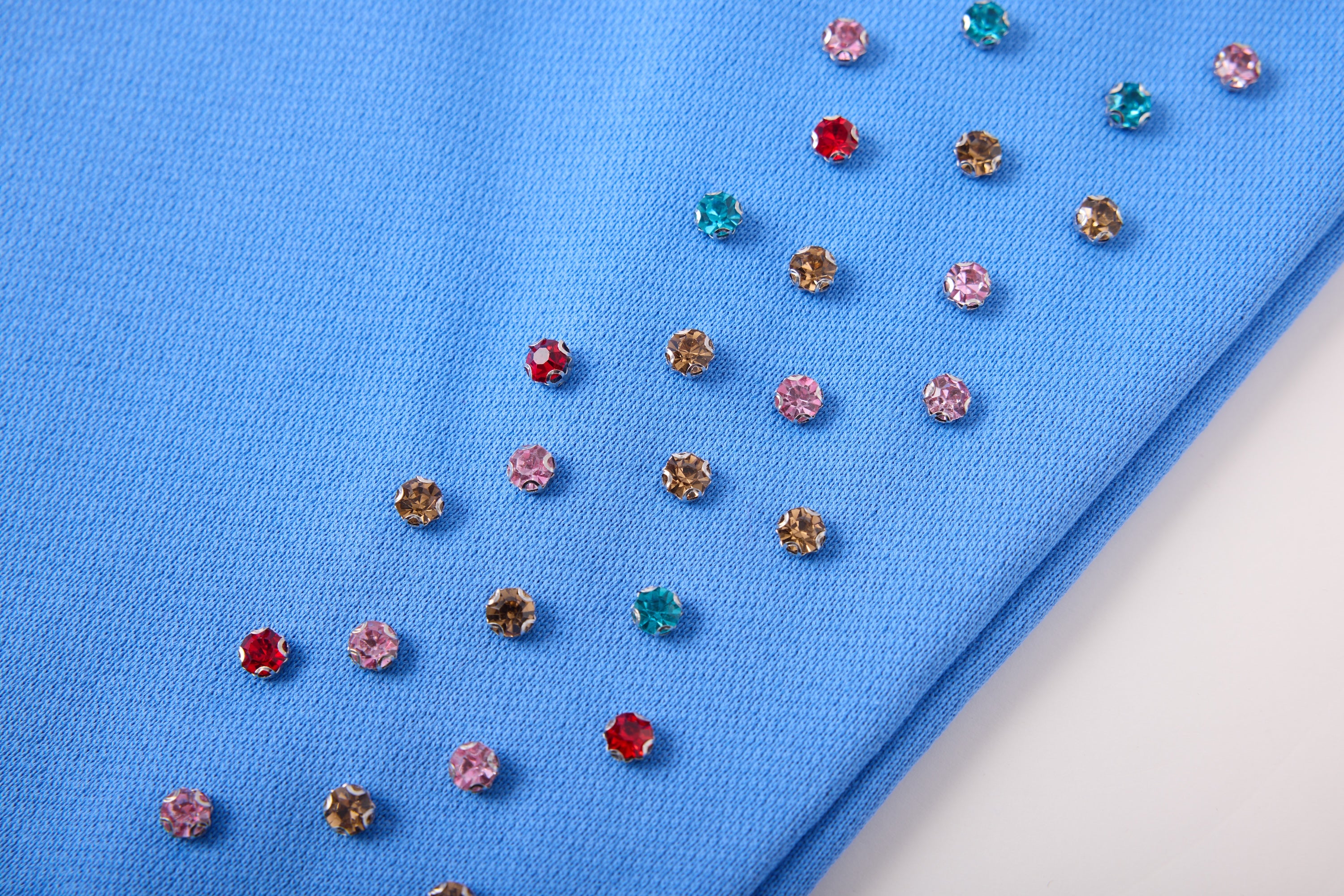 - Rhinestones sewn in