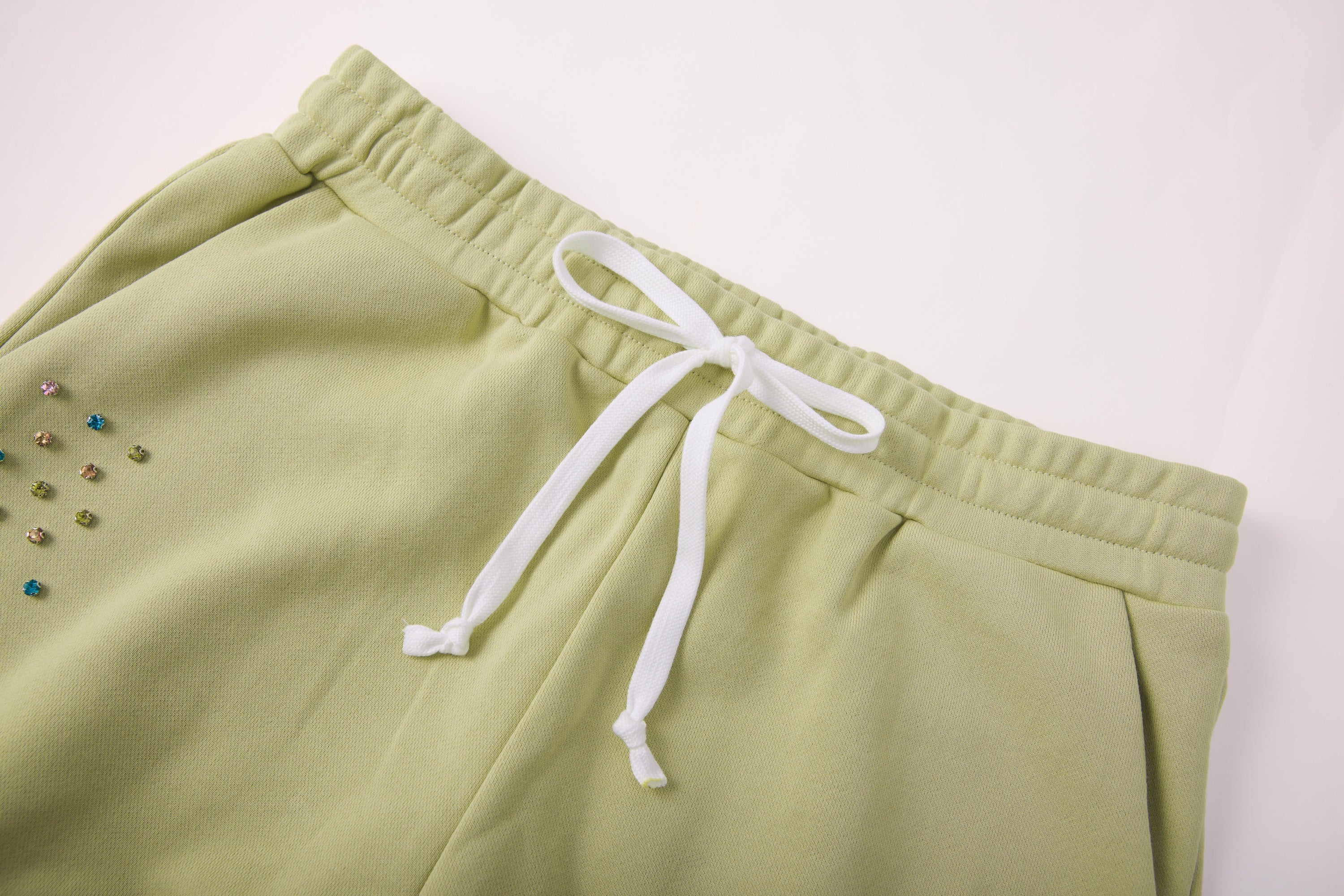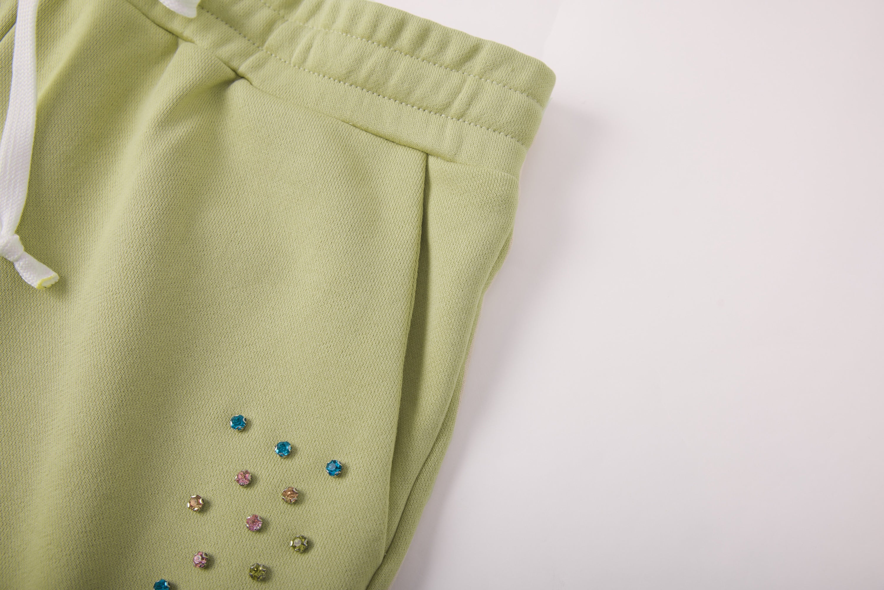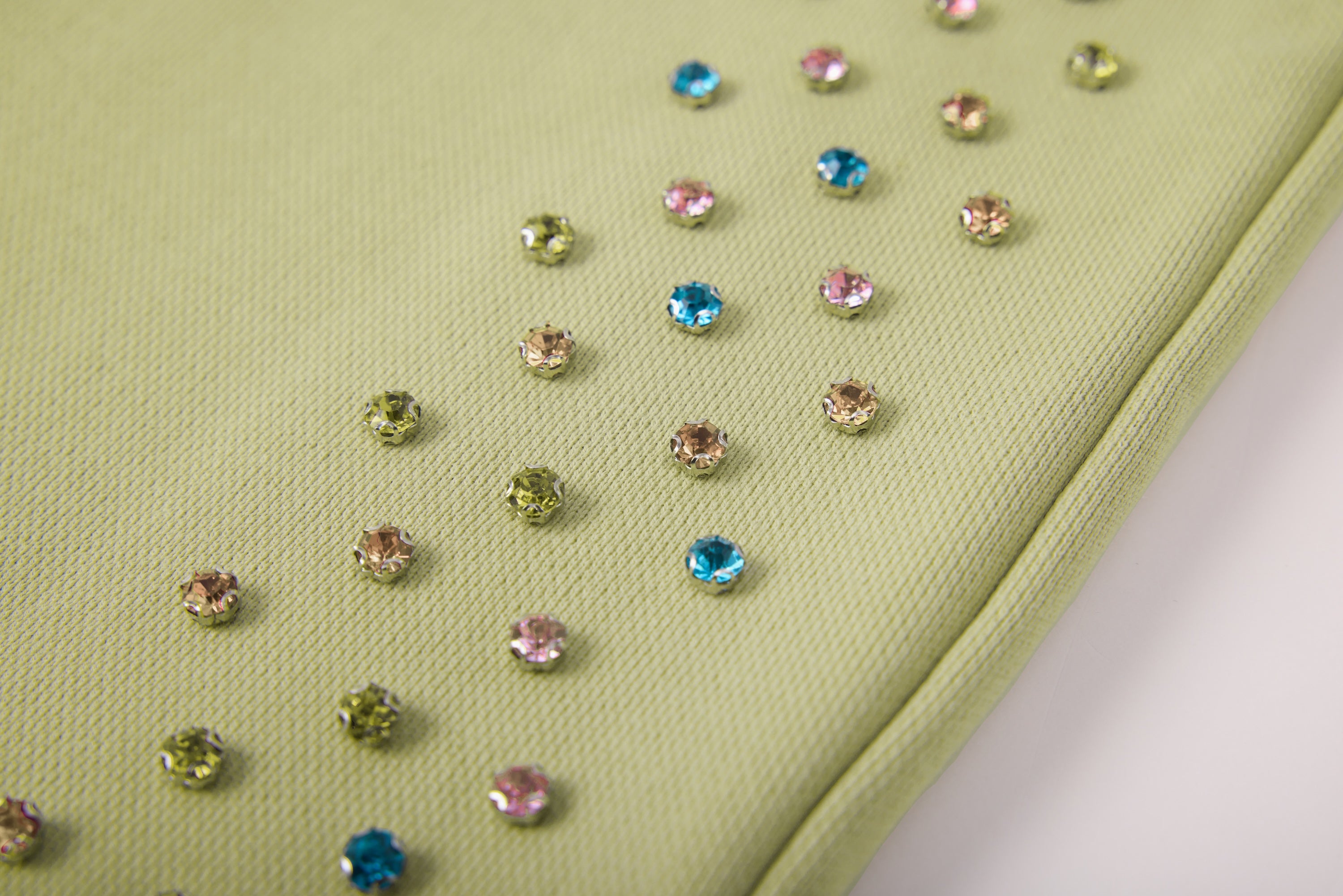- Rhinestones sewn in