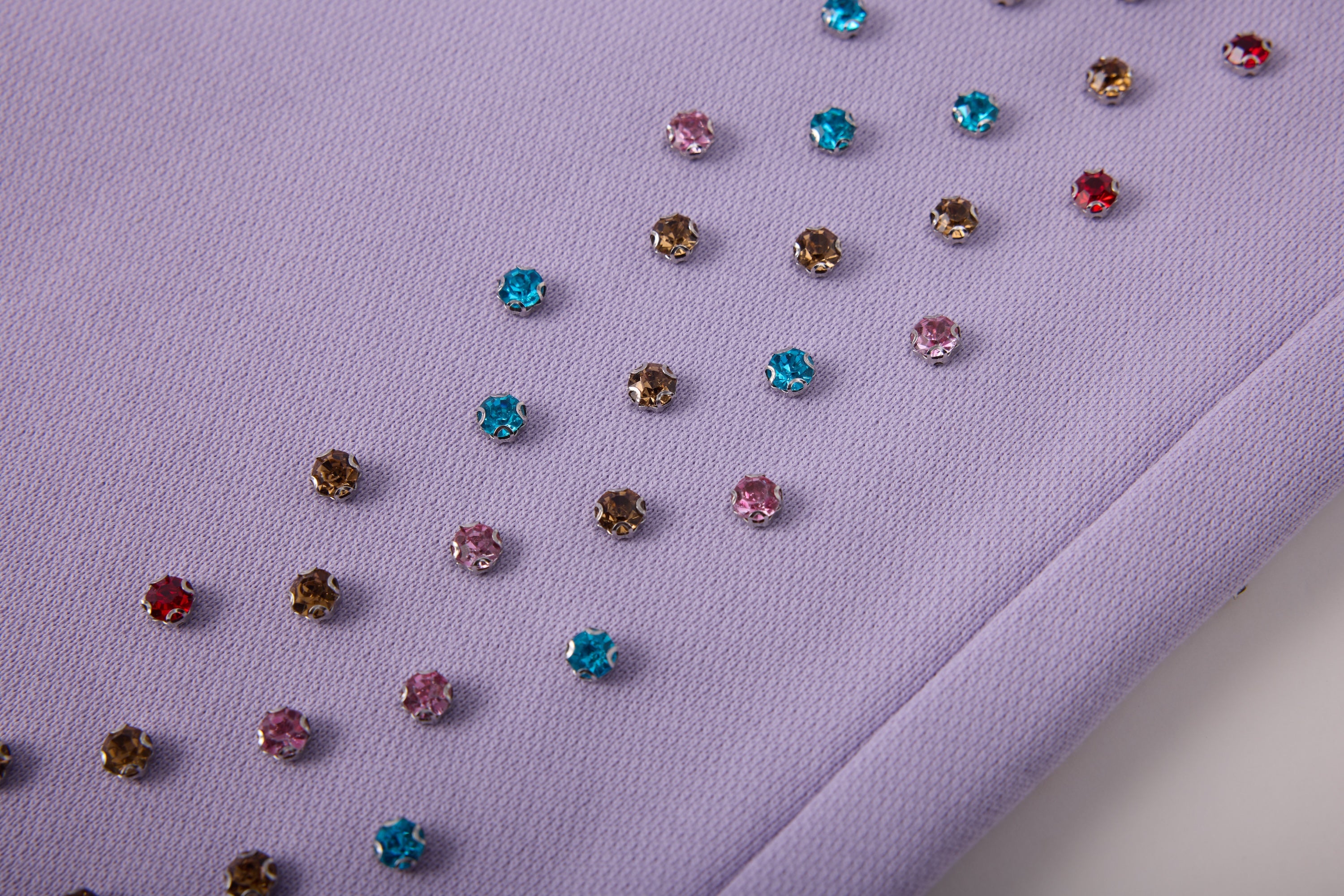 - Rhinestones sewn in