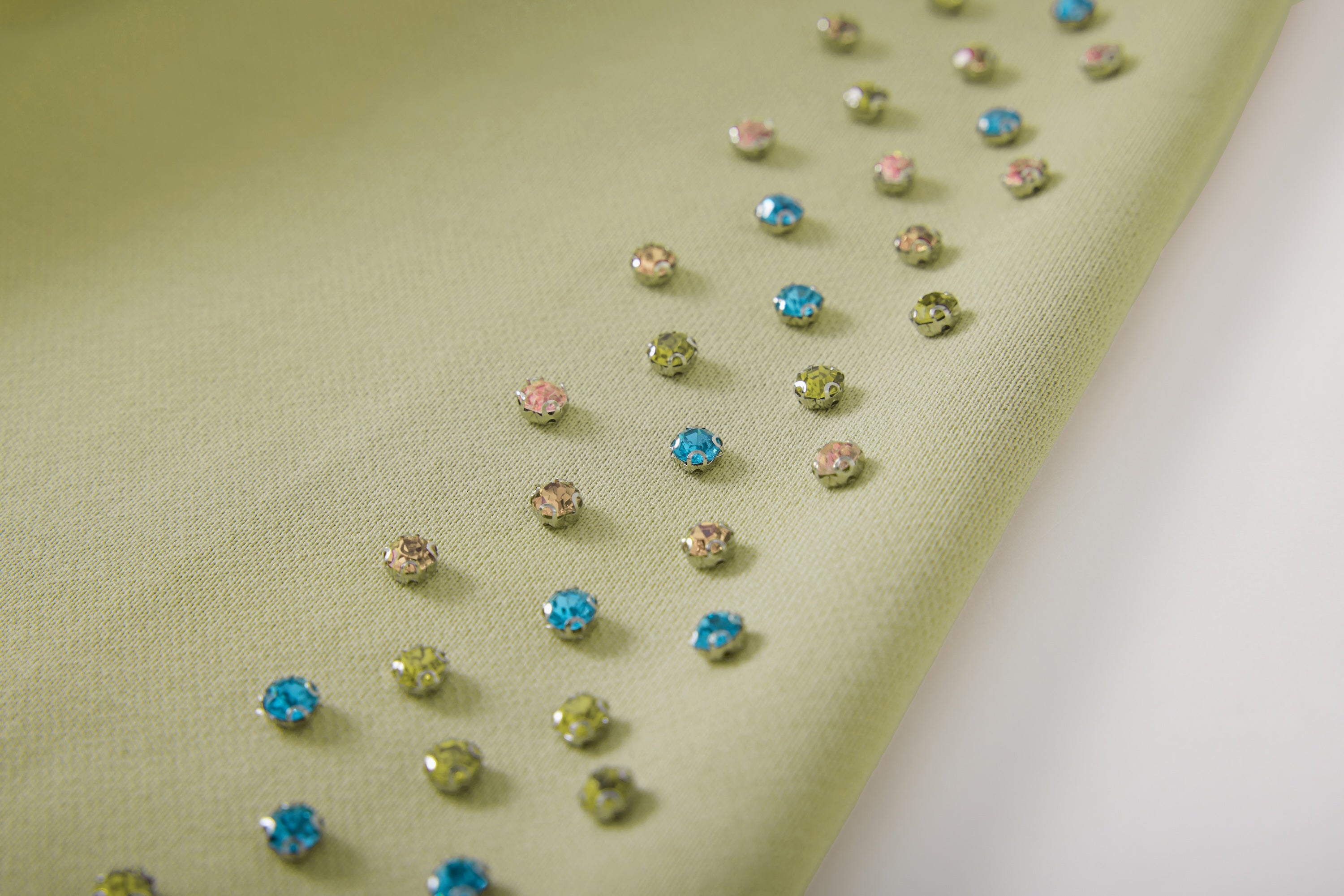 - Rhinestone sleeves sewn in