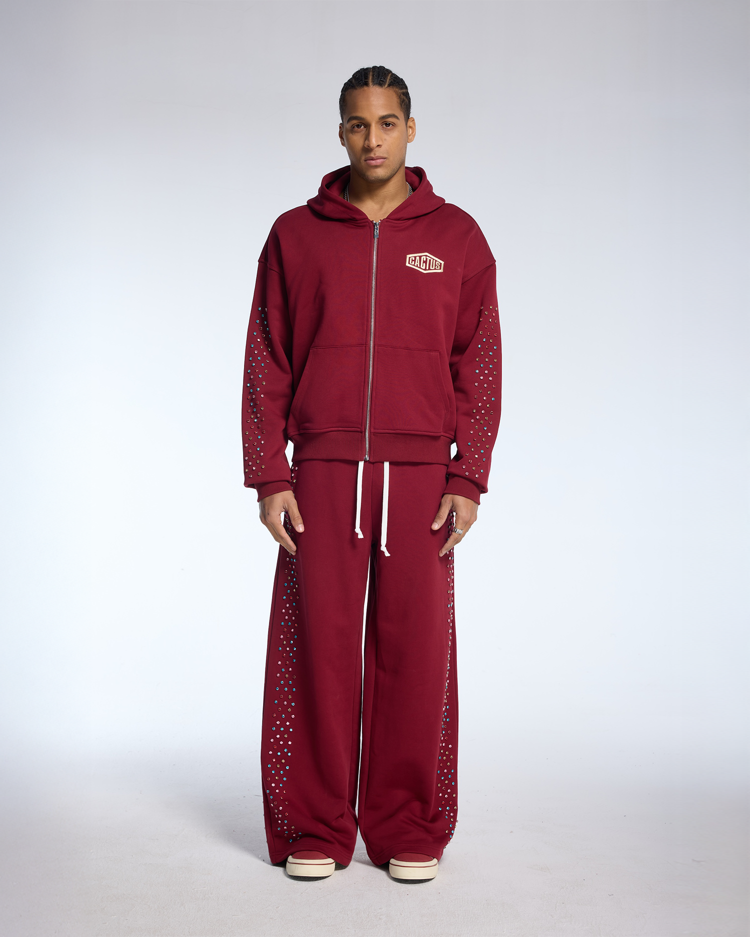 CRYSTAL CACTUS ZIP HOODIE - MAROON