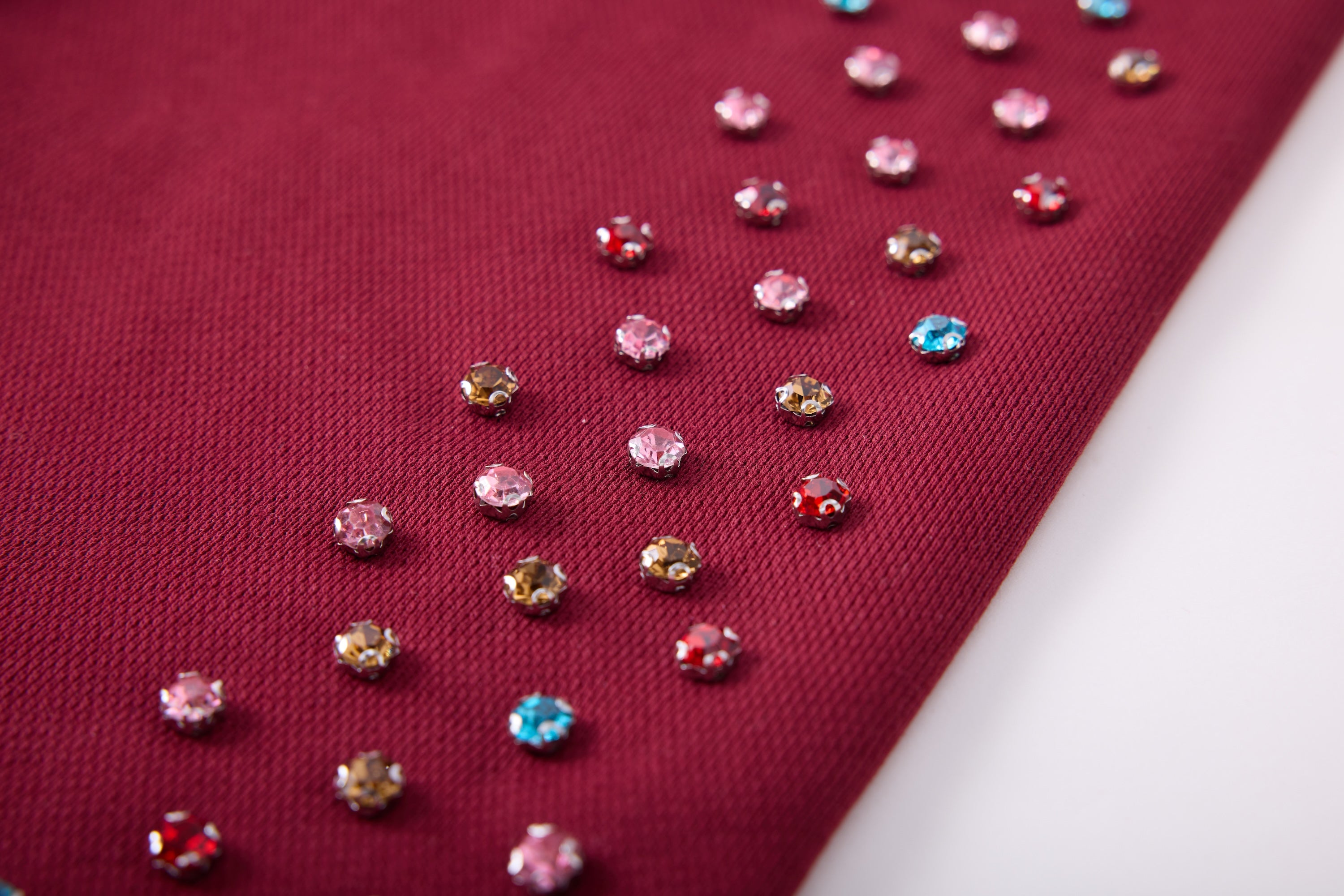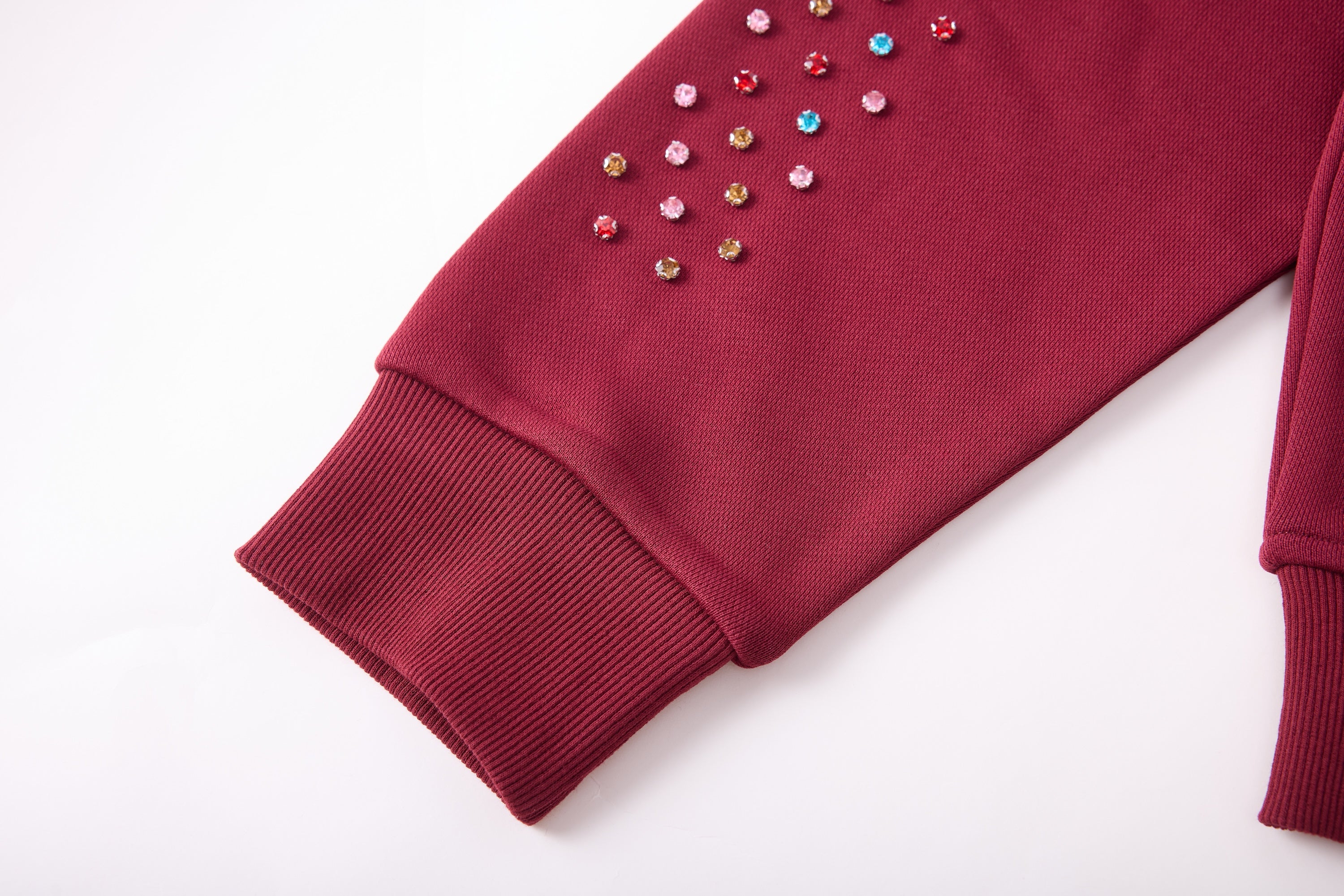 - Rhinestone sleeves sewn in