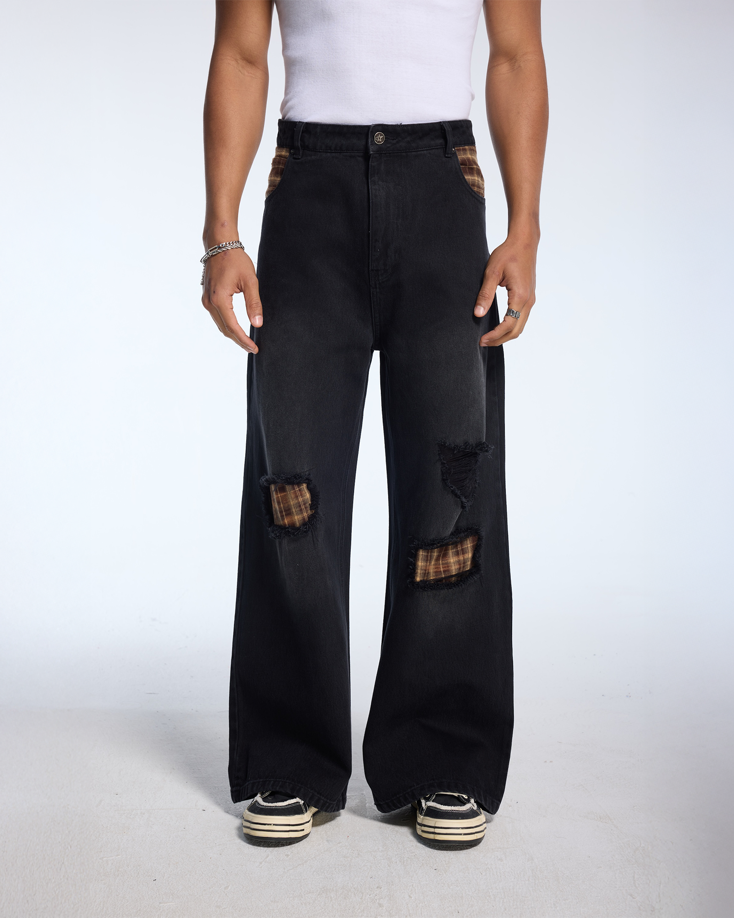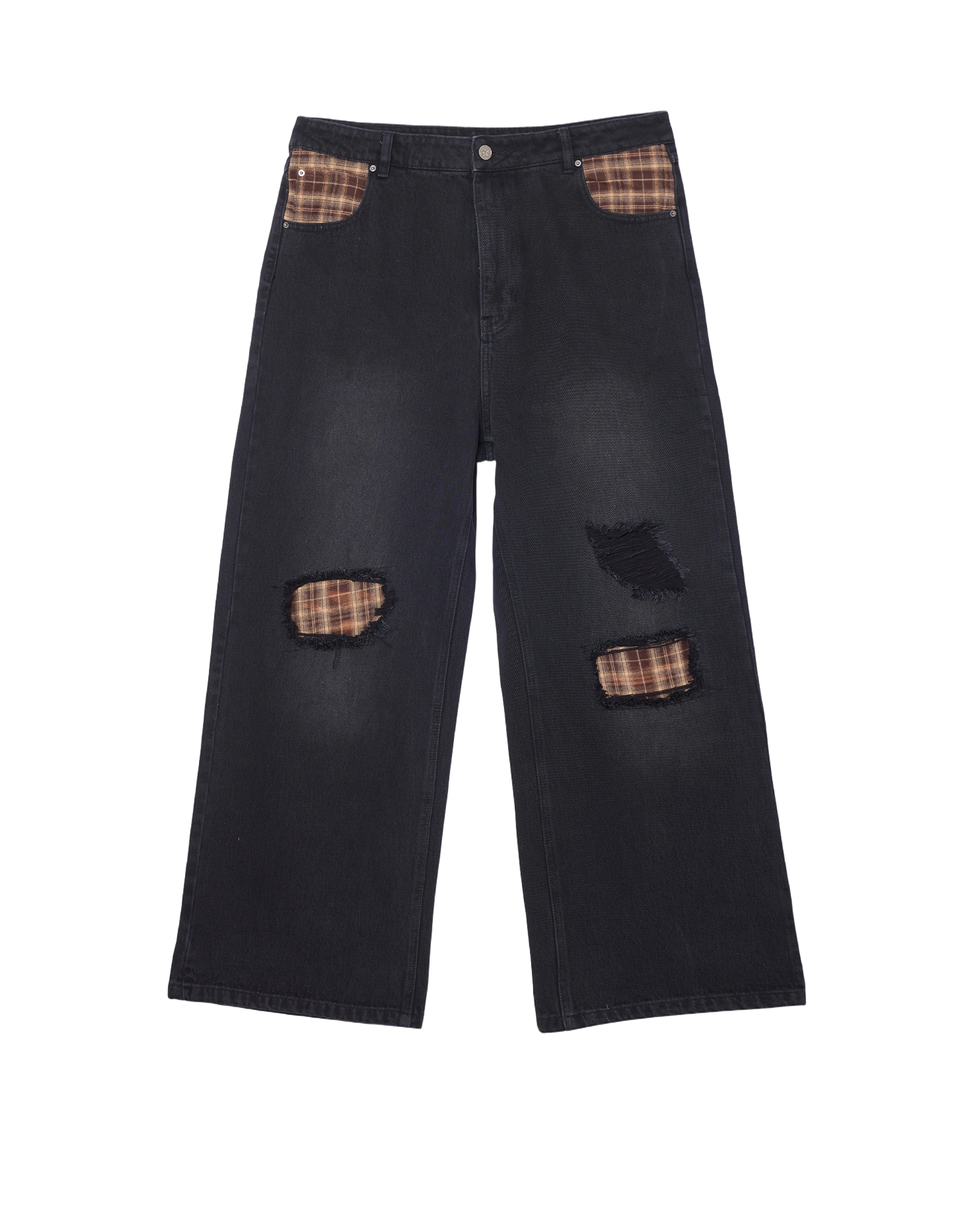 - Distressed w/ Plaid Patches