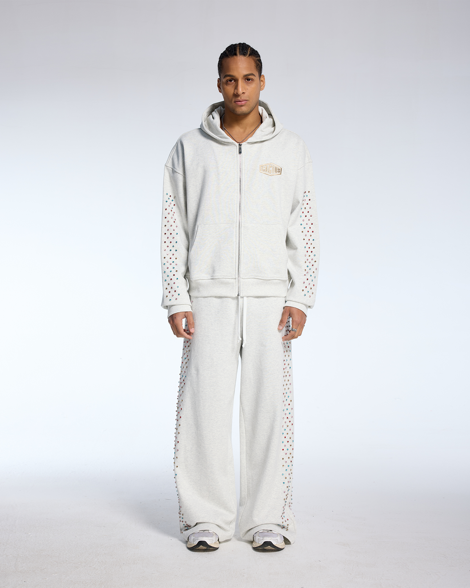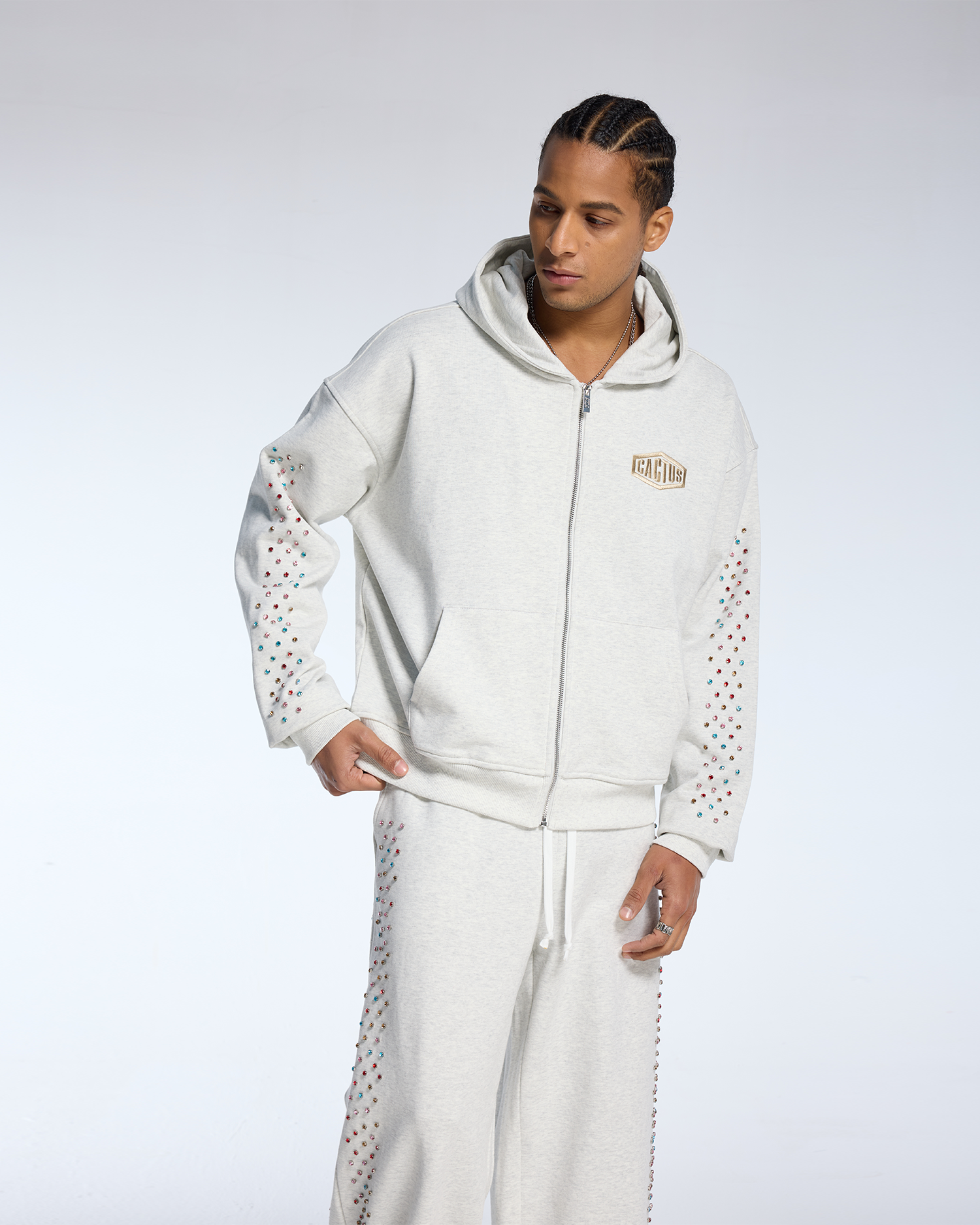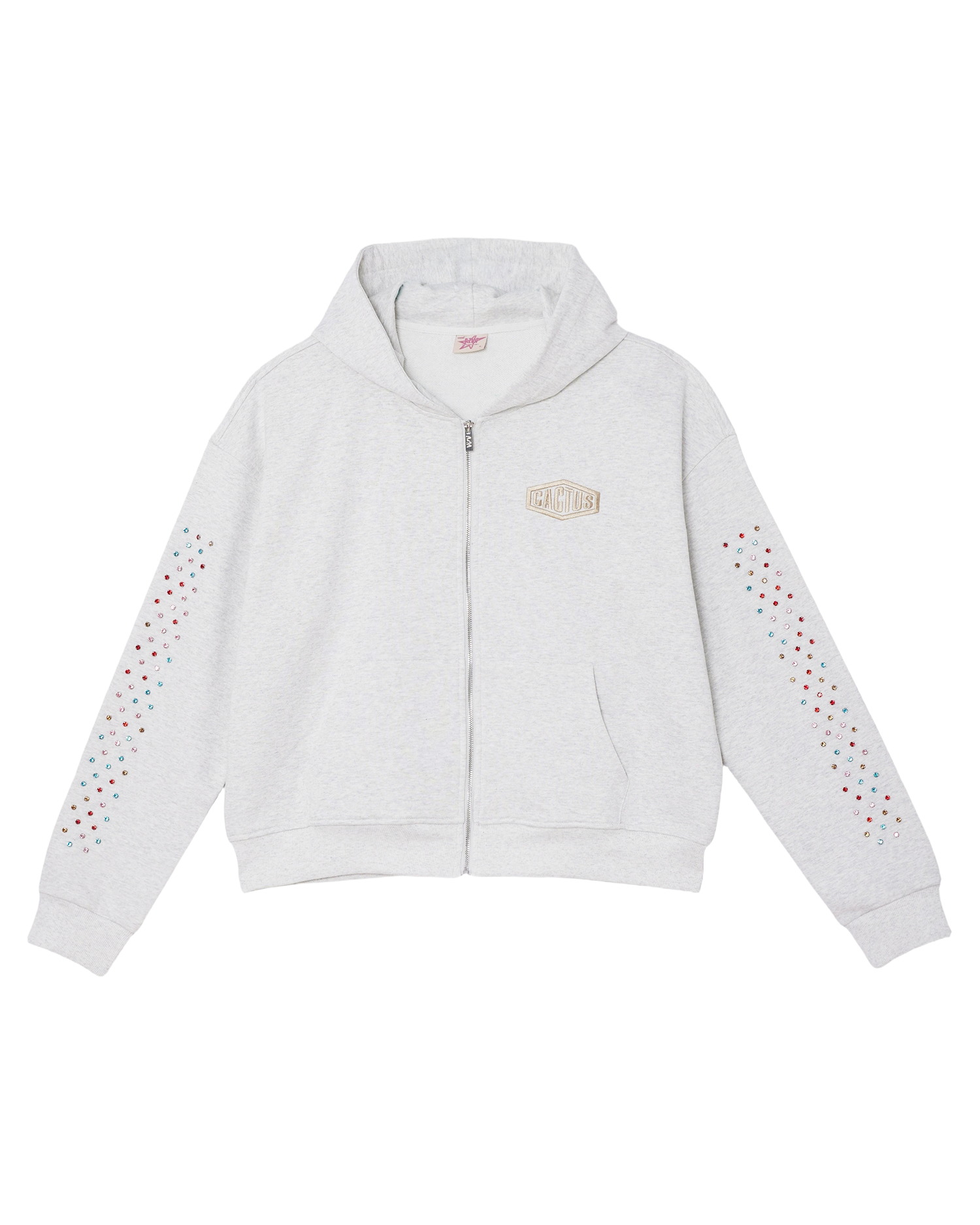 Crystal Cactus Zip Hoodie - Grey